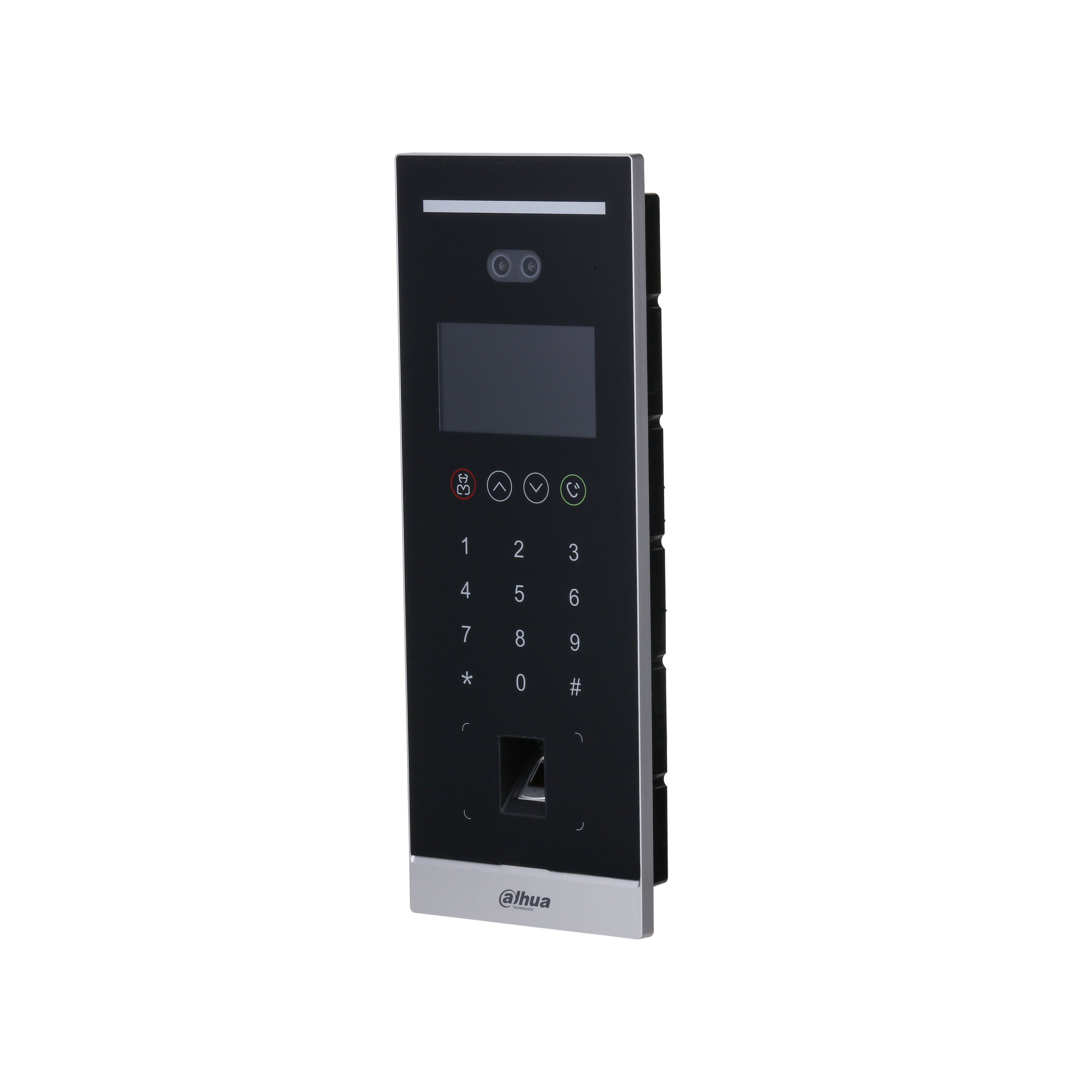 Unidad cámara exterior para video porteros Dahua, con reconocimiento facial y lectura biométrica de huella digital para el control de acceso. Incluye micrófono ambiental y parlante para comunicación bidireccional. Cámara con iluminación de apoyo para captar rostros durante la noche. Superficie táctil para llamar a la puerta. Posee un lector de tarjetas RFID que permite enrolar tarjetas RFID del tipo IC CARD y usarlas como llave personalizada para abrir la puerta en caso de extravío de las llaves físicas. Dispositivo resistente a las lluvias.